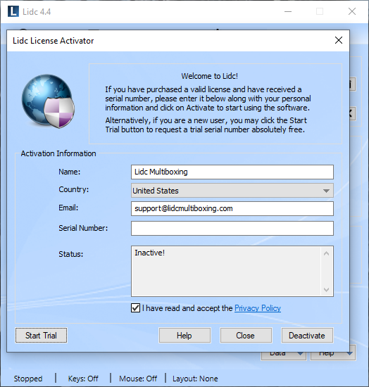Upon purchase of a new license for Lids, you will instantly receive an email with your personal serial number. In order to activate the software, please click on the Help button under the Settings Page, choose License Activator, enter the required information along with the serial number your received and click on Activate.