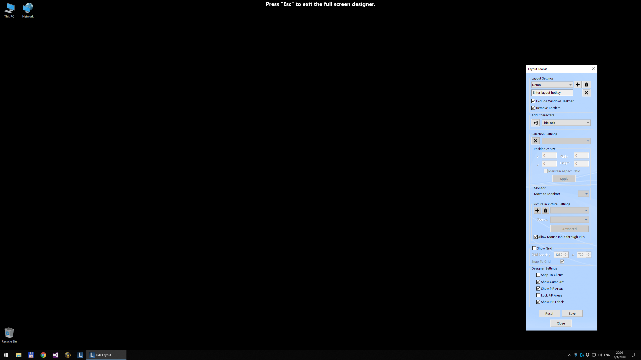 a) Open the Full Screen Designer, either by using the button located in the Layout Page or by using you assigned hotkey.