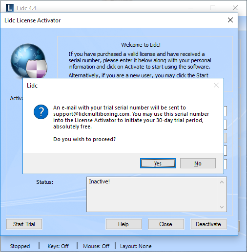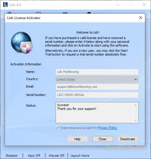 If you have any issues with your license, you may attempt to resolve them using our License Issue Resolution Center or by contacting Lidc Support via email to support@lidcmultiboxing.com.