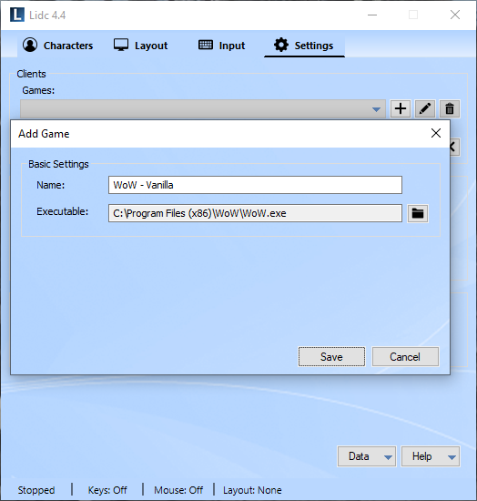 To add an expansion of World of Warcraft to Lidc, please navigate to the Settings Page and click on the add icon (+) next to your game list. Provide a unique name for this game and click on the browse button to locate the game's executable. The executable for World of Warcraftt is called Wow.exe for all expansions of the game with the addition of Wow-64.exe for any expansion after MoP.