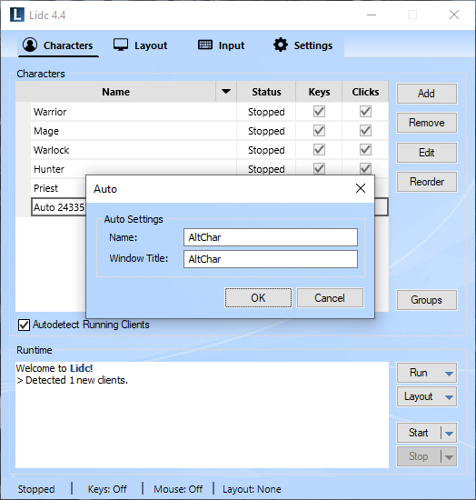 Enable this to automatically detect and use clients that you have launched directly using their shortcut or by running their executable file. Any detected clients will be added in the Characters Panel allowing you to include them when broadcasting your keys and mouse. Additionally, you may specify a name for any detected clients and use them in other featuress of the software. Please remember though, that those clients are only temporary and will be removed when closed.